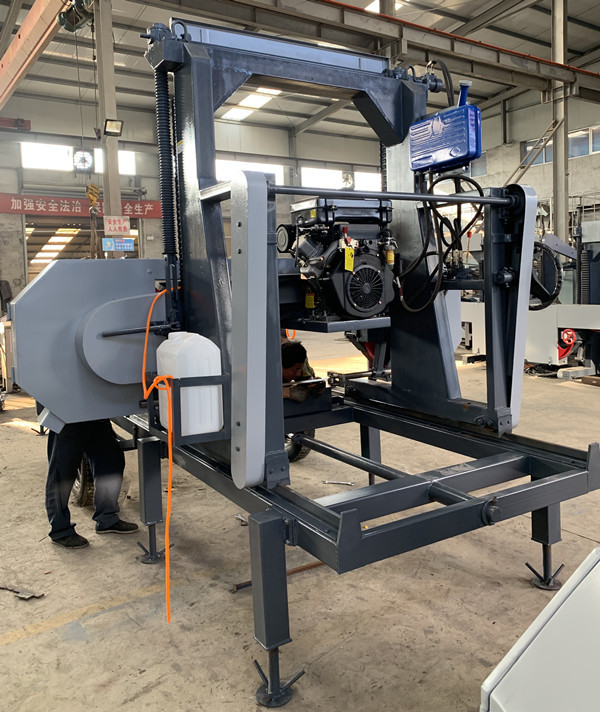 Tragbares horizontales Band sah ist unser Patentprodukt. Es rüstete sich mit Dieselmotor oder Benzinmotor aus. Einfach, passend für sich bewegen und den Schnitt des Holzes im reinen Wald zu installieren und zu benützen.