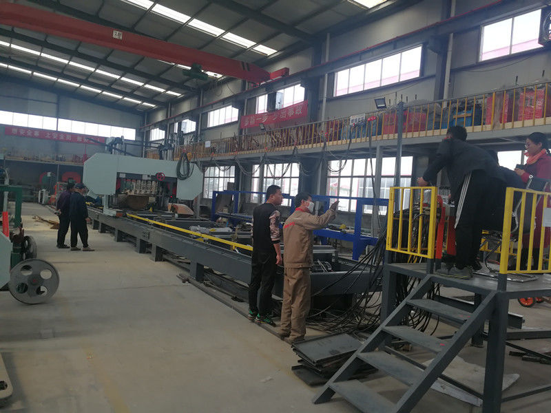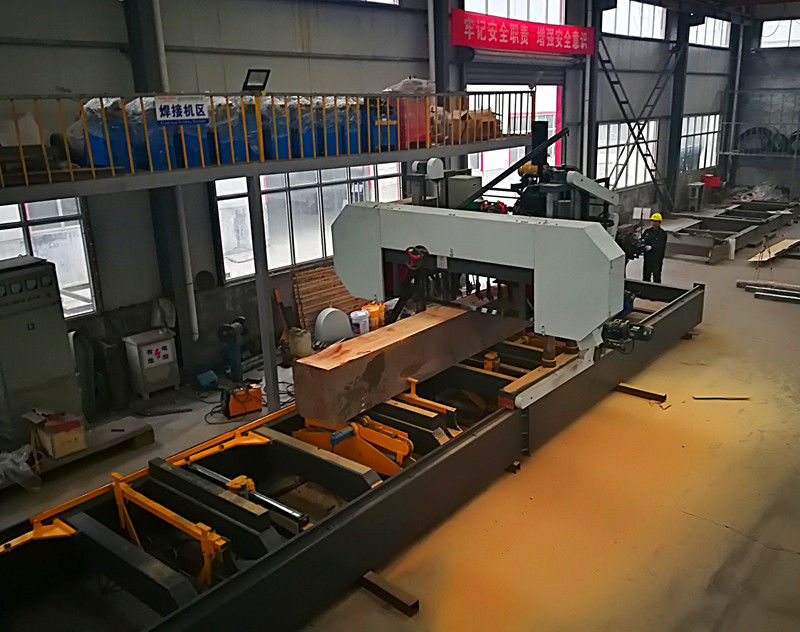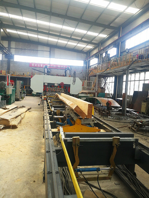 Kombiniert mit hydraulischer Automationstechnik, verwirklicht die hydraulische horizontale Bandhochleistungssägemühle alle digitale intelligente Steuerung. Chinesische und englische Betriebssysteme, automatische Rotation, das Sägen und der Schnitt des Holzes des großen Durchmessers, einfache Anlagenbedienung, genaue Schnittstärke, verbessert hölzerne Verwendungsrate.